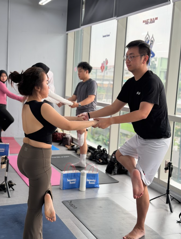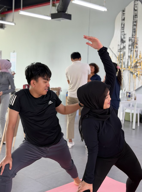 Beberapa pose dilakukan secara berpasangan, jadi peserta harus saling menjaga keseimbangan dan fokus. Momen ini jadi highlight tersendiri, karena bukan cuma soal gerakan, tapi juga soal trust dan bonding.