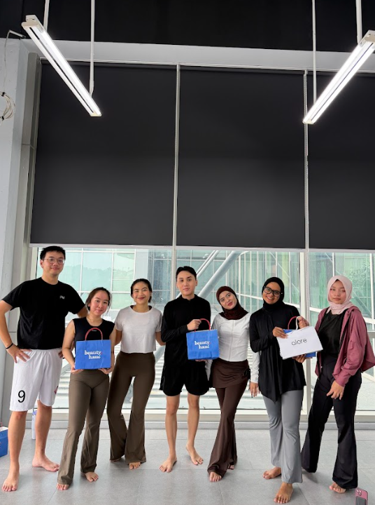 Sebelum acara resmi berakhir, sesi yoga ditutup dengan foto bersama antara seluruh peserta dan panitia. Senyum lebar dan wajah berkeringat jadi bukti kalau pagi itu benar-benar dinikmati sepenuh hati.