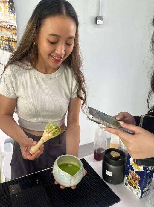 Setelah yoga, semua peserta dengan antusias berbaris untuk mendapatkan segelas matcha latte dari Matchanesan. Dibuat menggunakan matcha powder ceremonial grade, rasanya umami dan smooth—pas banget untuk recharge tenaga setelah sesi yang cukup menguras energi.