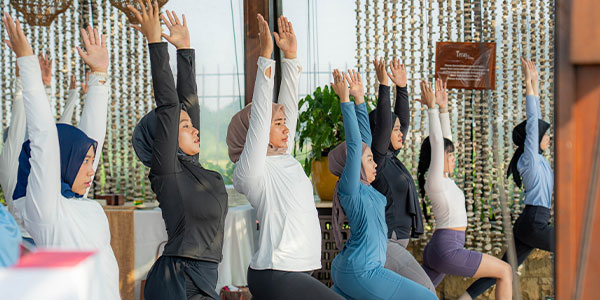 Pagi itu suasana di Teras by Plataran langsung terasa hangat saat para peserta mulai datang dan registrasi yang dimulai pukul 07.00 pagi. Setelah sesi pembukaan singkat, giliran Sekar (@sekarsrw) yang ambil alih memandu sesi yoga. Sekar atau lengkapnya Sekarsari Wahyuni, memulai perjalanan yoganya sejak 2015 ketika berjuang dengan kondisi jantung lemah. Dari situ ia menemukan kenyamanan dan healing lewat yoga, hingga akhirnya lulus Yoga Teacher Training di Purinawa Yoga School Jakarta pada 2016 dan langsung mulai mengajar. Dengan pengalamannya, Sekar membawakan sesi yang bikin tubuh lebih rileks tapi tetap seru, ditambah interaksi hangat dengan para peserta.