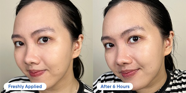I have to say di pemakaian setelah enam jam, wajah MinBHI masih cukup flawless dan nggak luntur sama sekali. Dengan catatan, complexion ini tidak di-set menggunakan bedak atau setting spray, serta digunakan full di ruangan ber-AC. Overall, skornya 4 / 5 dari MinBHI!