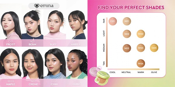 Sama juga dengan versi matte, Glow Vibe Cushion ini hadir dalam delapan shades yang terbagi dalam cool, normal, dan warm undertone: