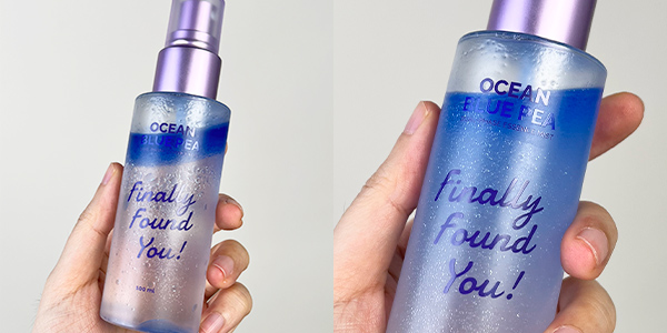 Produk dikemas dalam sebuah botol plastik transparan berukuran 100 ml, dilengkapi dengan aplikator spray. Kemasan seperti ini bikin isi keseluruhan essence mist jadi terlihat (di mana cairannya ada gradasi warna transparan dan biru, dari si Bunga Telang). Hal yang jadi notes tambahan MinBHI adalah betapa smooth si spray nya, bikin essence mist kesebar secara merata di wajah.