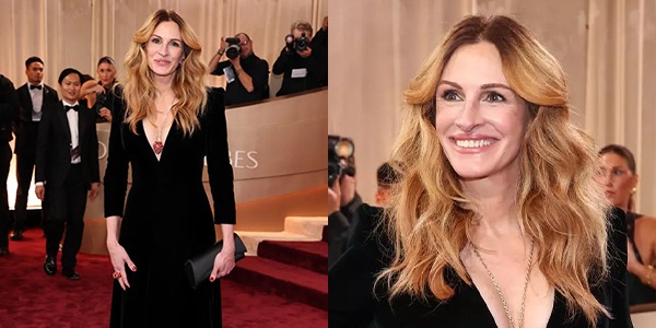Lastly, the drop dead gorgeous, Julia Roberts. Walaupun usianya almost 60, tapi cantiknya definisi nggak hilang dimakan zaman. Golden Globes 2026 menjadi appearance pertamanya sejak tahun 2019. Yang menarik, saat red carpet, pemain Notting Hill ini hadir dengan tampilan rambut baru dengan warna yang super terang. It goes well dengan outfit v neck black dress yang kelihatan simple tapi tetap chic.